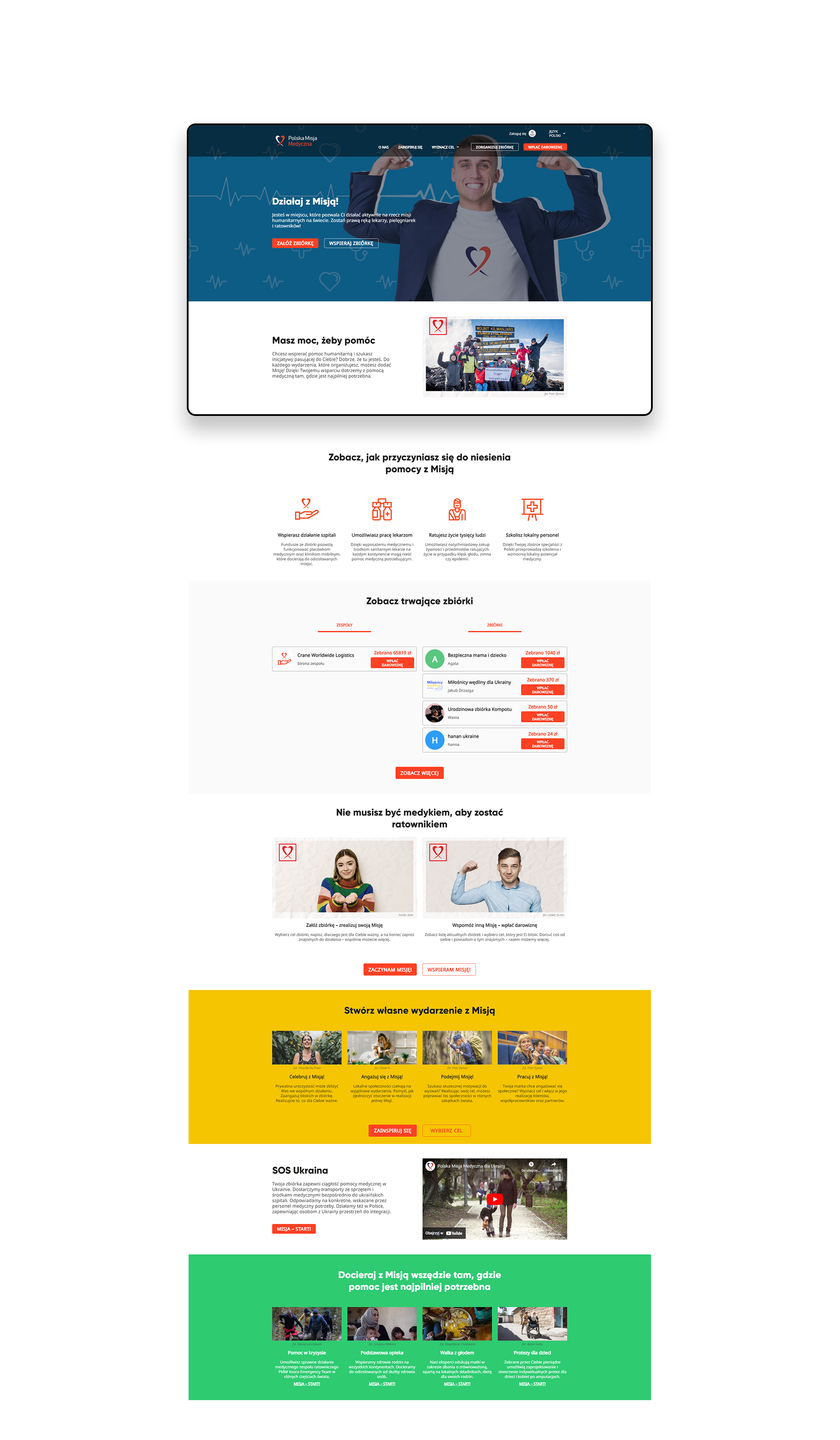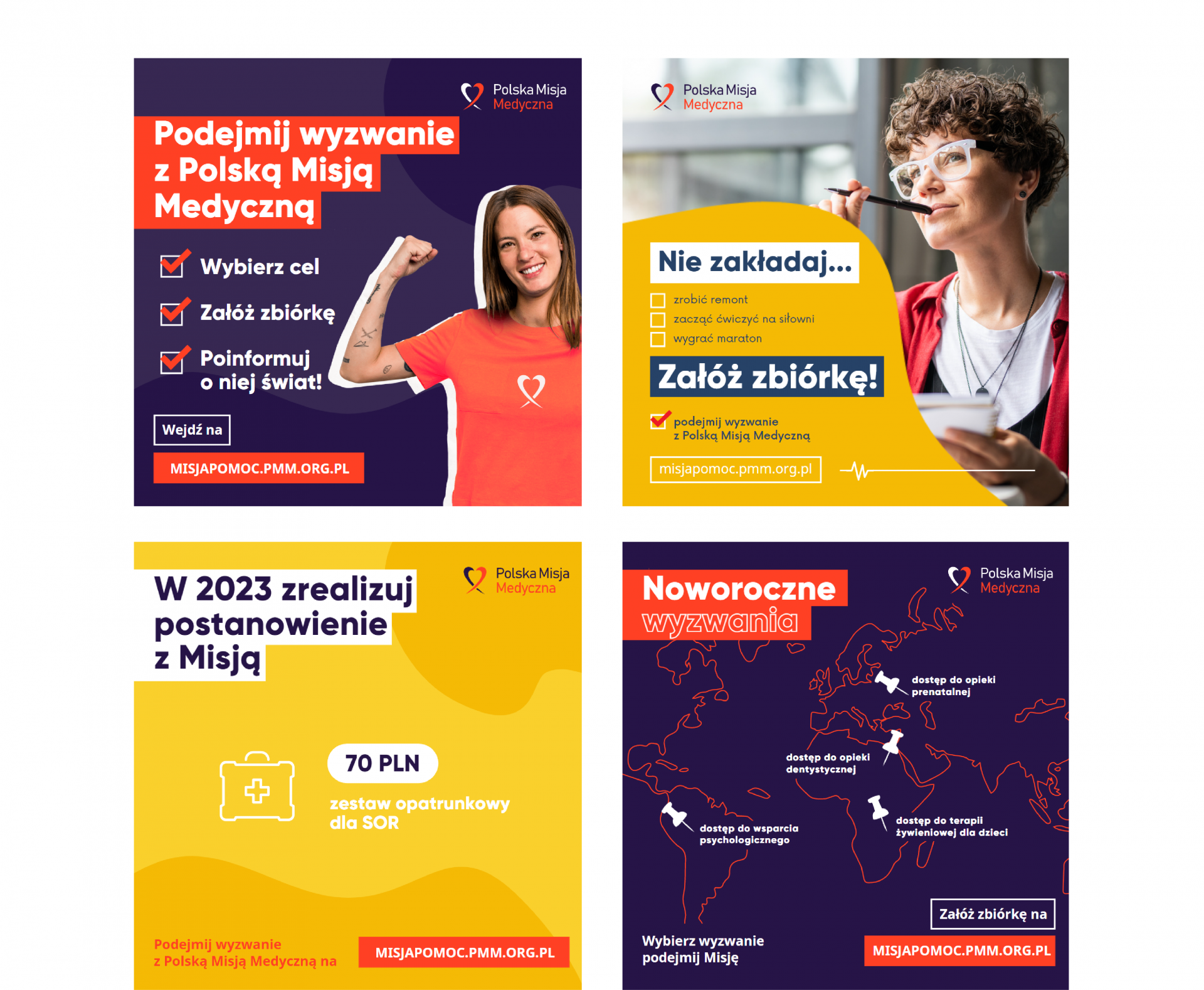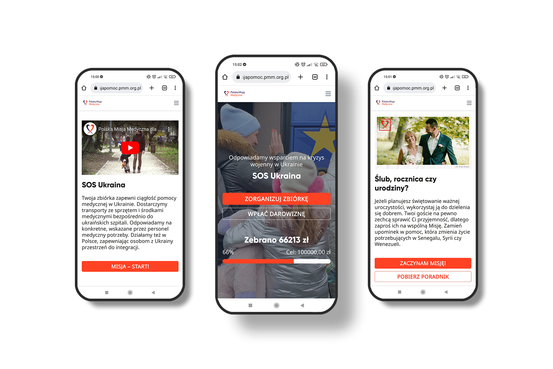 Kampania reklamowa dla Polskiej Misji Medycznej to jedna z najbardziej rozbudowanych marketingowych działań społecznych realizowanych na zlecenie polskiej organizacji humanitarnej. Byliśmy odpowiedzialni za stworzenie szaty graficznej platformy, animacji kierunkowej w headerze, grafik do kampanii Meta ads na jej potrzeby. Przygotowaliśmy również kompleksowy copywriting. Mamy nadzieję, że dzięki tej platformie Polska Misja Medyczna będzie mogła jeszcze skuteczniej nieść specjalistyczną pomoc potrzebującym na całym świecie. Nie trzeba być magikiem, żeby zostać ratownikiem!