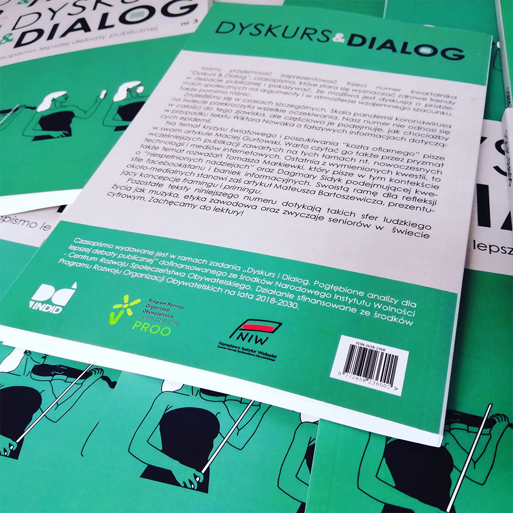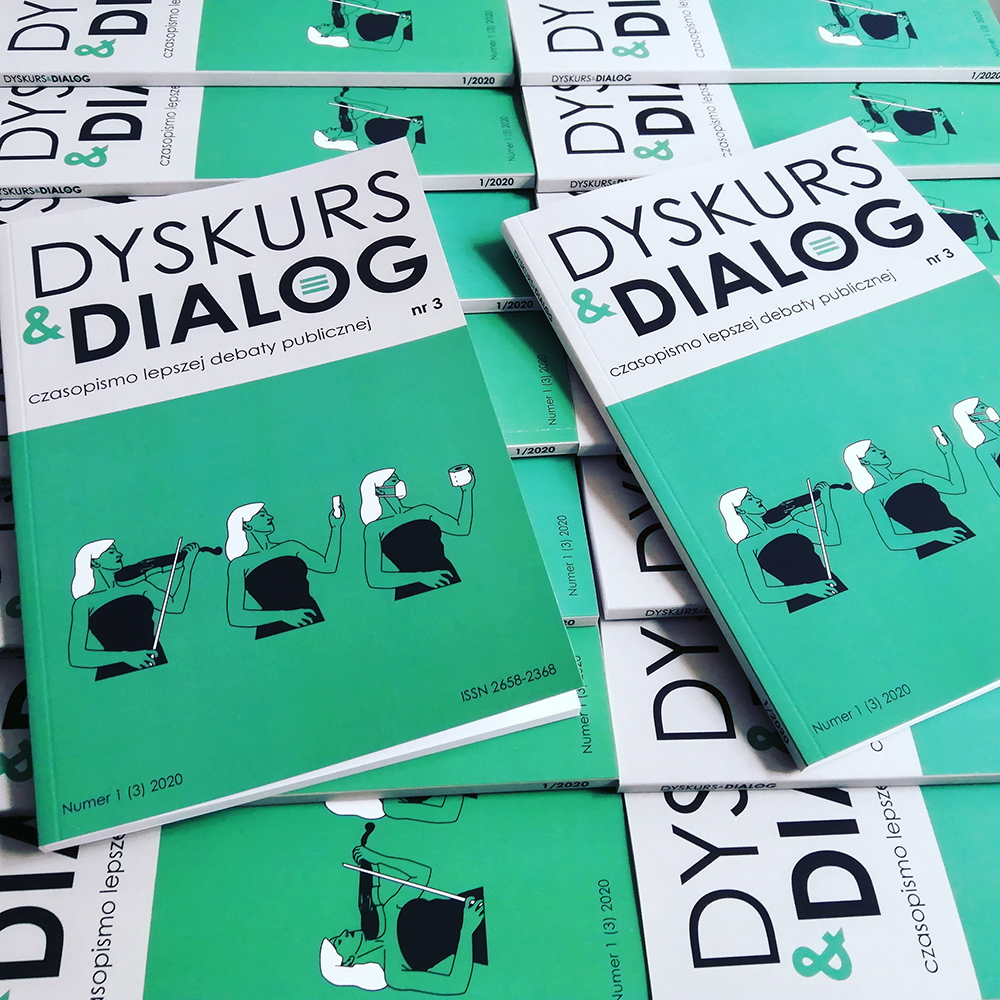 Na zlecenie Instytutu Dyskursu i Dialogu zaprojektowaliśmy skład publikacji. Przy współpracy z ilustratorką Patrycją Krawczyk przygotowaliśmy zmodernizowany layout czasopisma, zgodnie z nową identyfikacją wizualną organizacji. Dodatkiem stały się autorskie ilustracje na okładce traktujące na tematy, związane z problemami podejmowanymi w poszczególnych numerach.